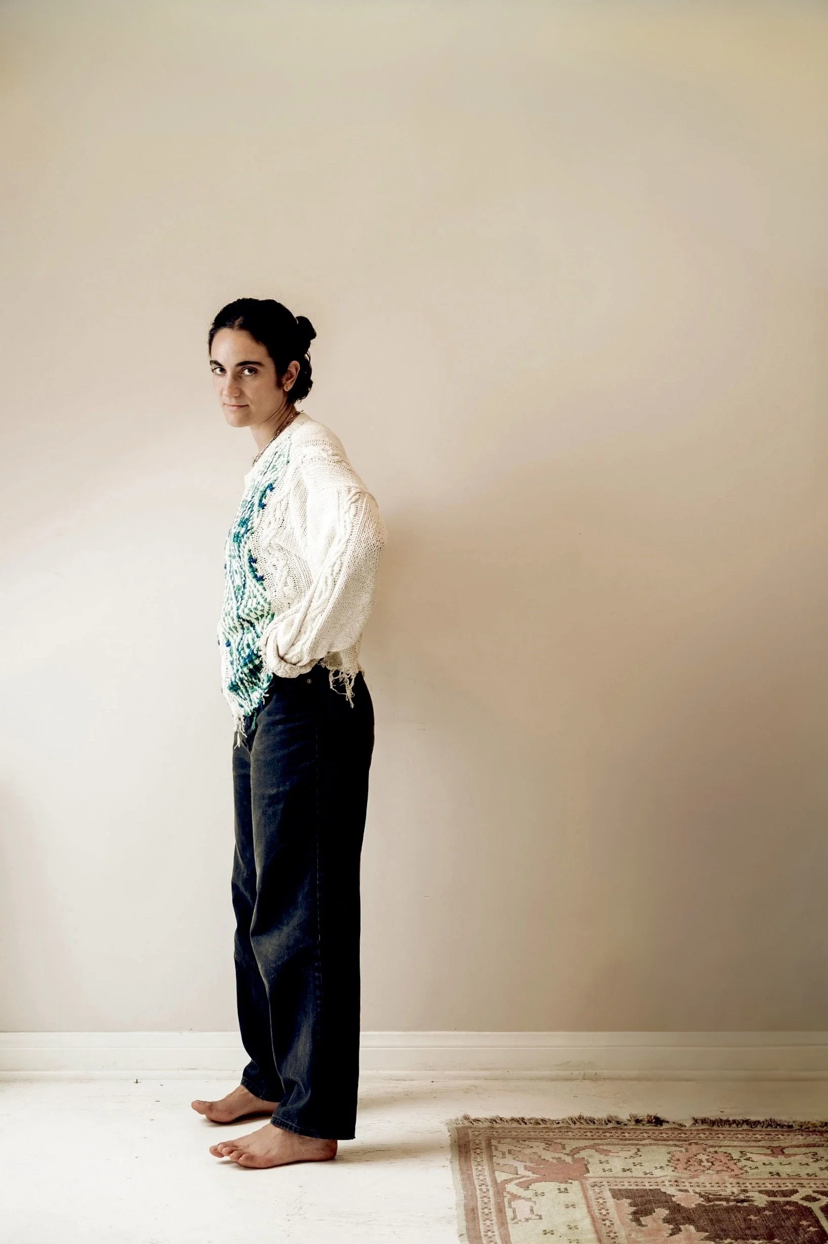 To me, time is a very playful thing because time is a concept. I know that my body experiences time linearly, and that feels like a fact. But in the bigger picture, as a philosophical concept, time feels so pliable and uncertain. To me, that makes it exciting. It’s so unanswerable in a way that doesn't really affect me in the same way as my body and the questions that it raises when it's betraying me. That's a very immediate experience versus questions of time and questions of God. Those are questions that I'm never actually going to get answers to, so it becomes this play space where I can be like, Oh, what if I’m accessing the future when I'm meeting someone? What if me at ten-years-old is in existence out there and just doing her own thing? That just has more levity to me. And I think also accepting that the body faces mortality, then there's the question of the soul and the soul being infinite and something that's out of time. Which feels also like the acceptance of God, which is something that is greater than time.